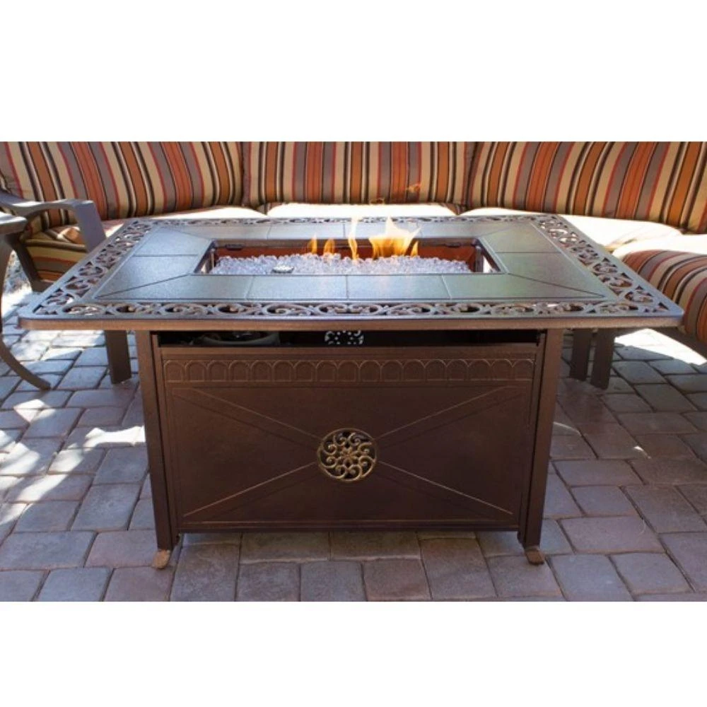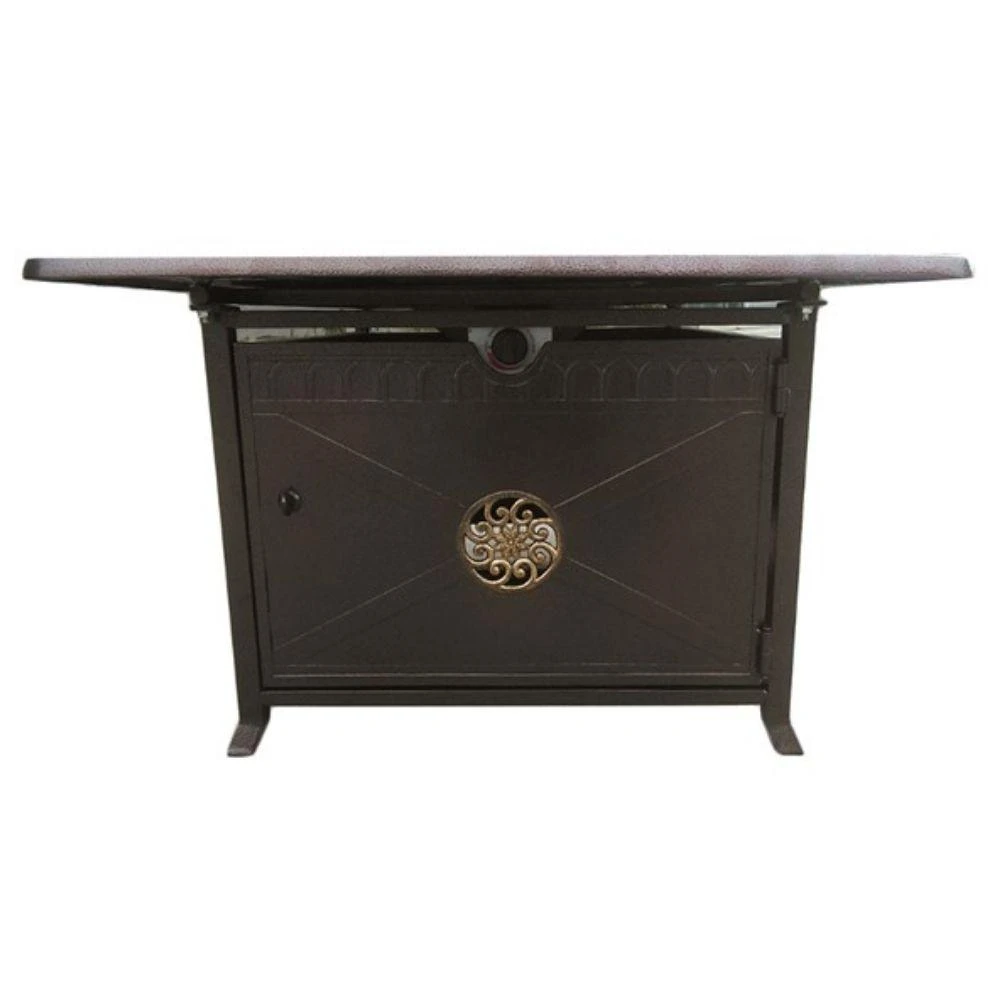 The AZ Patio Heaters Scroll Design 50″ Rectangular LP Fire Pit Table is the perfect solution for those that don’t want to be cooped up inside when the temps dip below freezing. This fire table will give you an outdoor fireplace without having to worry about building a bonfire or cleaning ashes out of your yard after use!Â