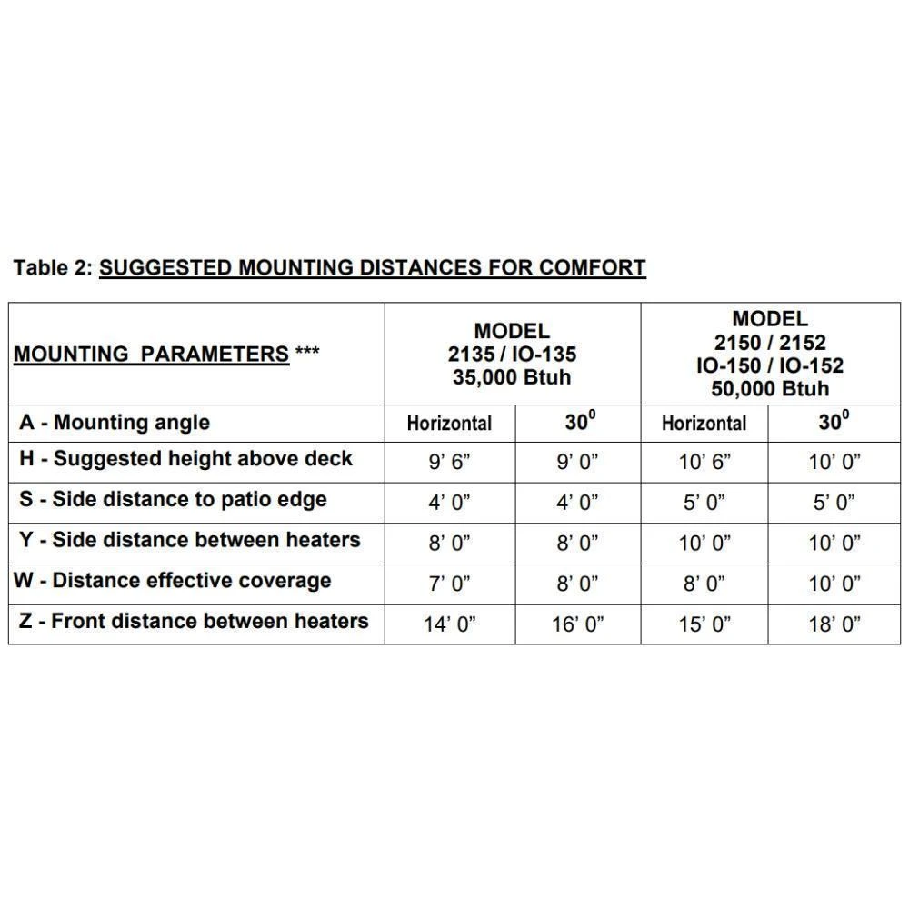 - Perfect for 8′ to 10′ mounting height for efficient heat coverage