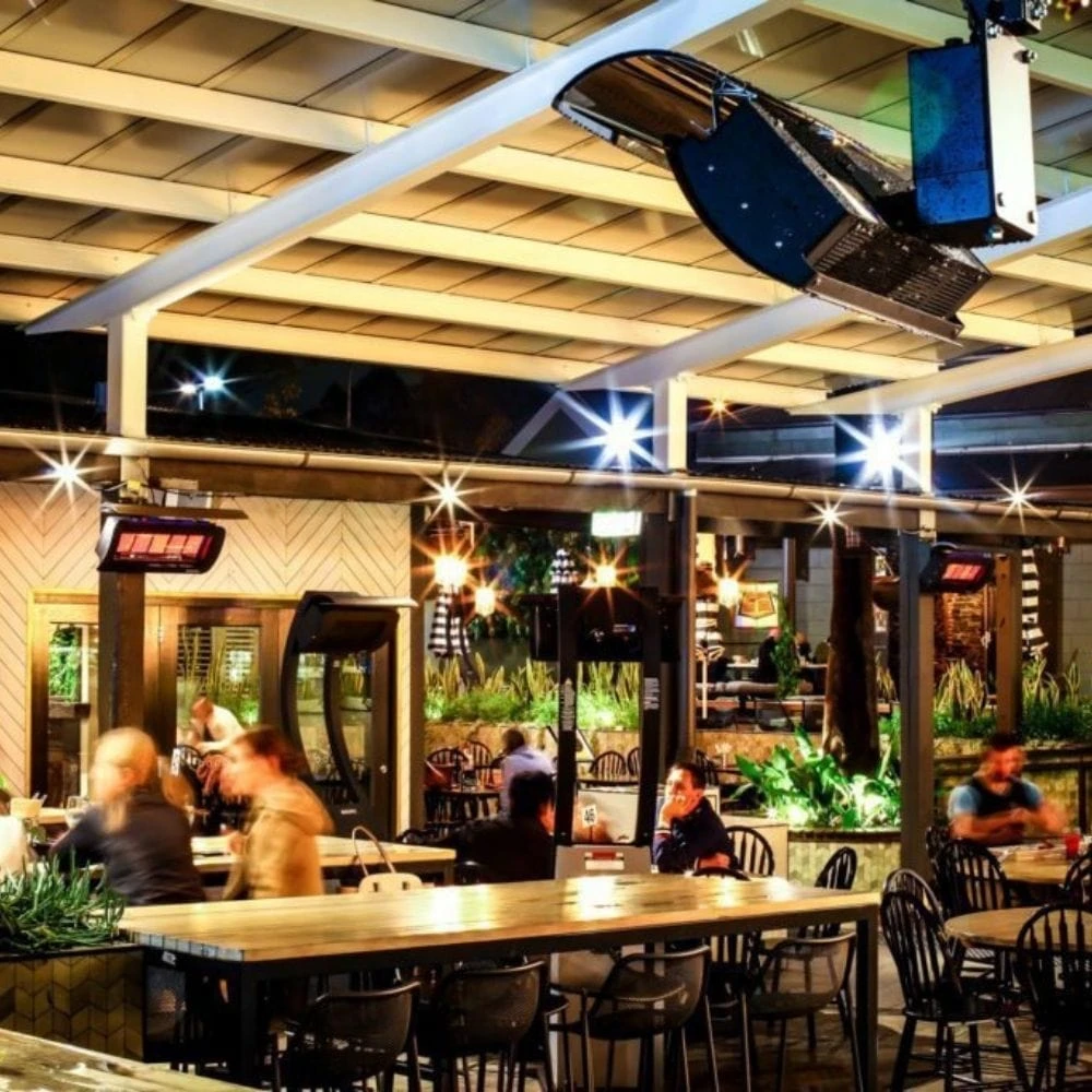 Even in winds up to 8 mph, its patented screen heats efficiently to keep you warm. Multiple ceiling or wall mount options are available to suit your space. Its pivot arm allows more precise directional heat control. Not only is it simple to install, but it’s also easy to turn on with a flick of a switch. Optional wireless controls are available.