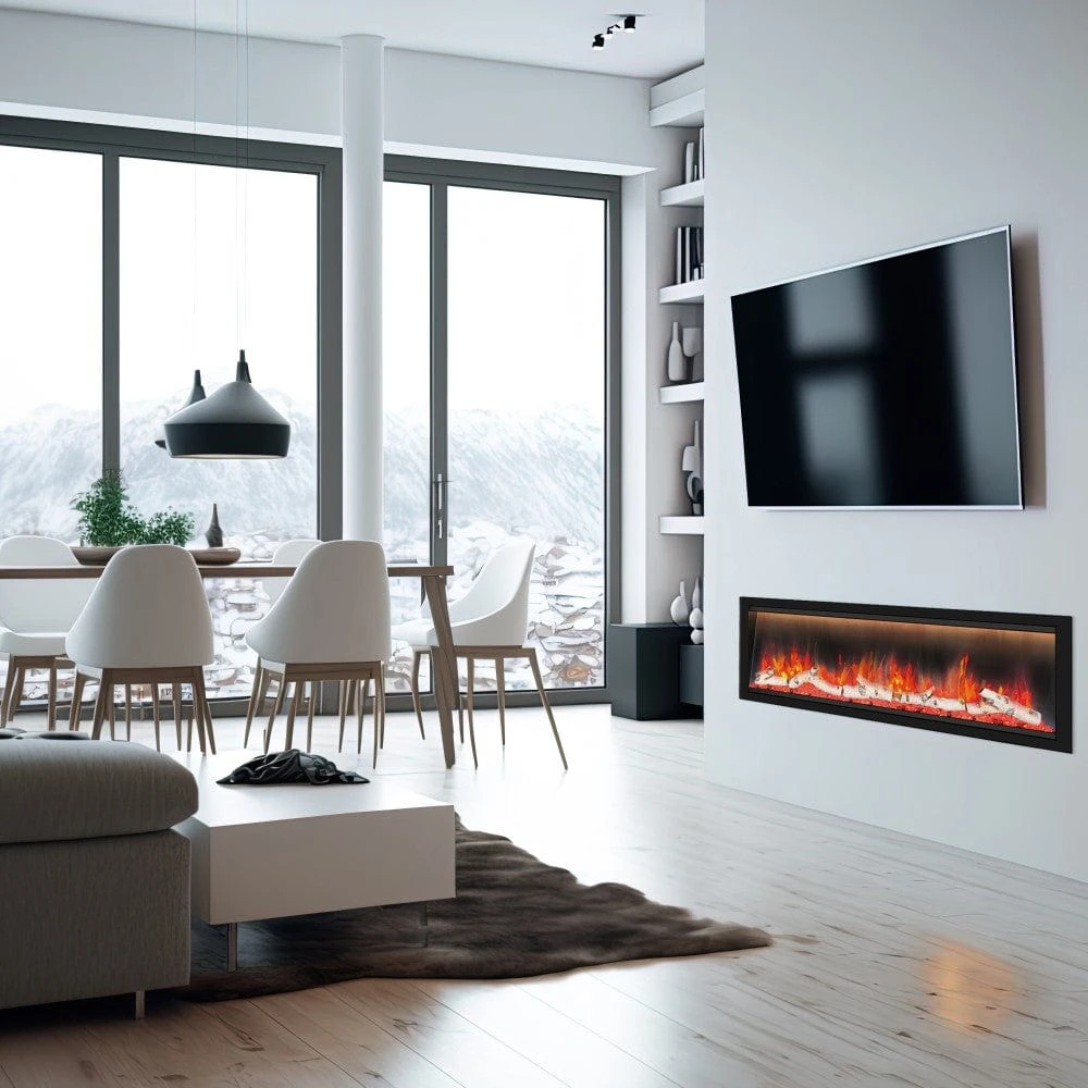 - Modern Electric Fireplace with Wi-Fi Integration, neatly installed within the wall