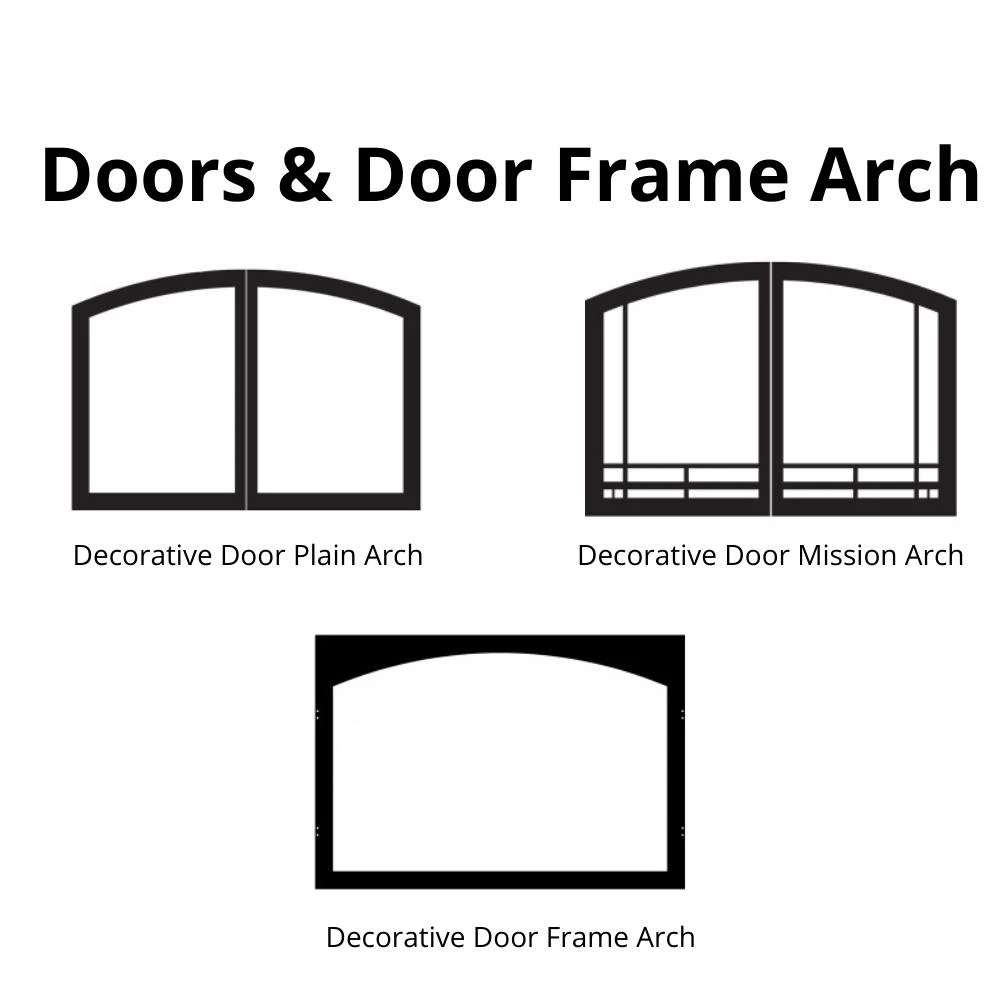 Optional Accessories:Â Refractory Log Set, Blower, Wall Control Options, Remote Control Options, Extended Hood, Mantel Tops, Mantel Bases, Louvers, Arch Doors, Door Frame, Outer Frame, Bottom Trim Kit