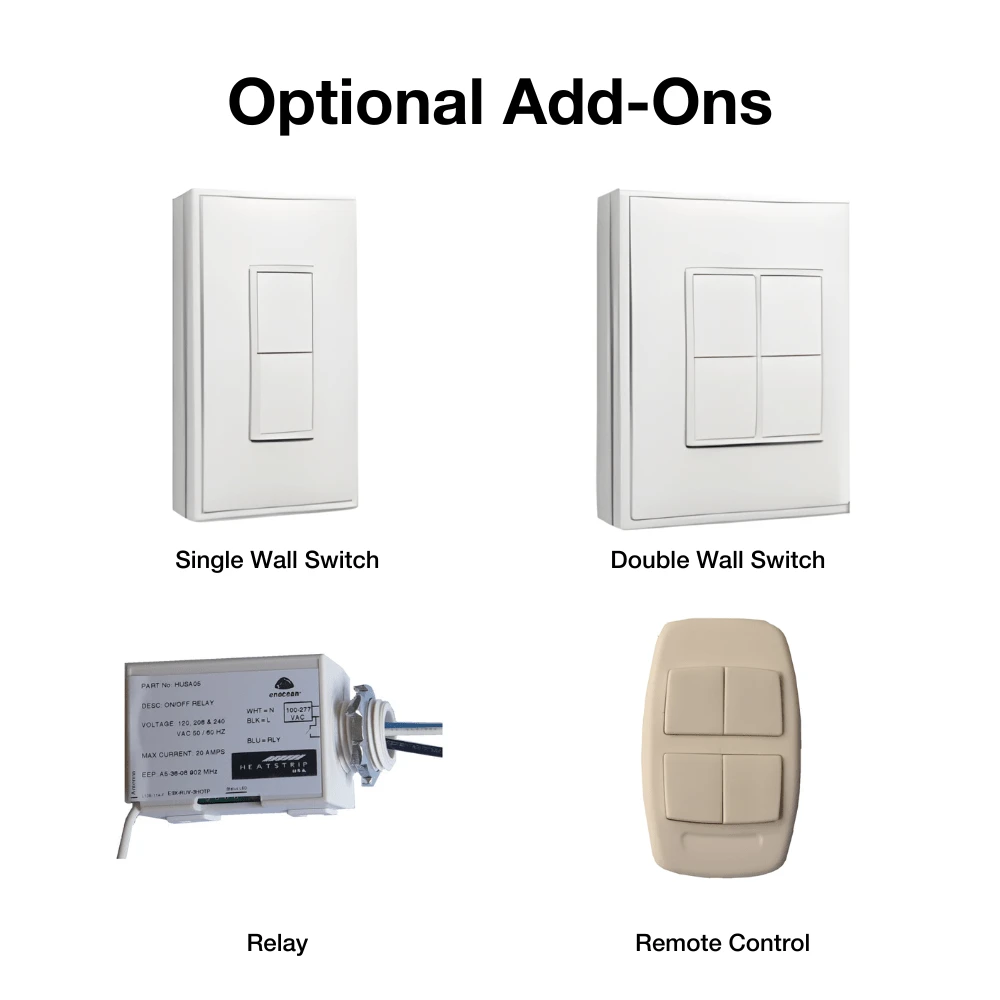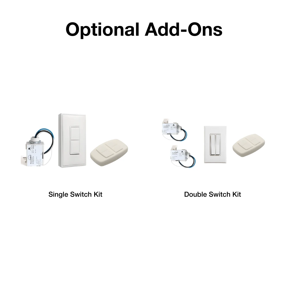 Optional Add-Ons: Switch, Relay, Switch Kits, Remote Control, Bracket Set, Drop Down Kits, and Flush Mount Enclosure
