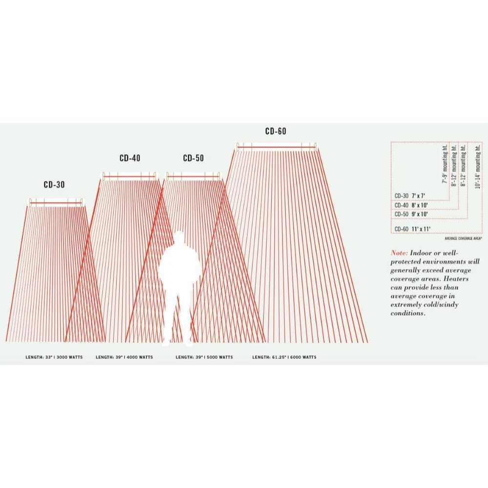 What you need is a sleek electric heater that works efficiently to provide consistent warmth. For high-end spaces, the Infratech CD 61″ Dual Element Heater is an excellent choice for its efficient infrared heating technology, versatile installation, and easy operation. Plus, with 8 custom colors to choose from, it will perfectly match your décor.