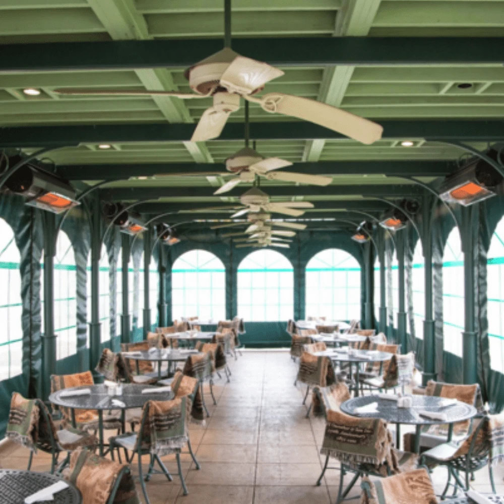 This can be wall or ceiling-mounted, so you can free up more space for furniture. With a required top clearance of only 3 inches, you have more freedom to place the patio heater where you want.
