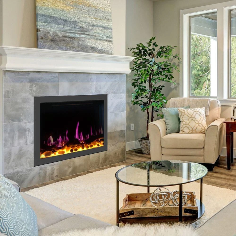 Worry no more about venting or air pollutants as this unit is vent-free and cleaner to use. Simply insert it into an existing or new opening, then hardwire or plug it into an outlet. Built with a trim, gaps between the fireplace and the wall are covered for a perfectly recessed installation. The 38″ model has a wider trim than the 31″ one.