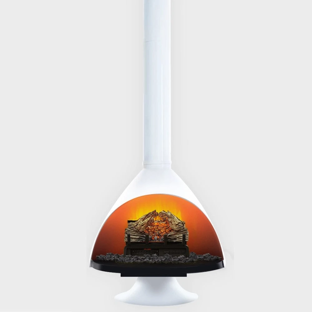Introducing the Malm Zircon Electric Fireplace, a unique conical electric fireplace with a touch of midcentury charm. It is offered in white, matte black, or slate gray, and 8 other exquisite porcelain colors. With minimal heat output, it’s perfect for those residing in warm areas who still crave the cozy ambiance of a fireplace.