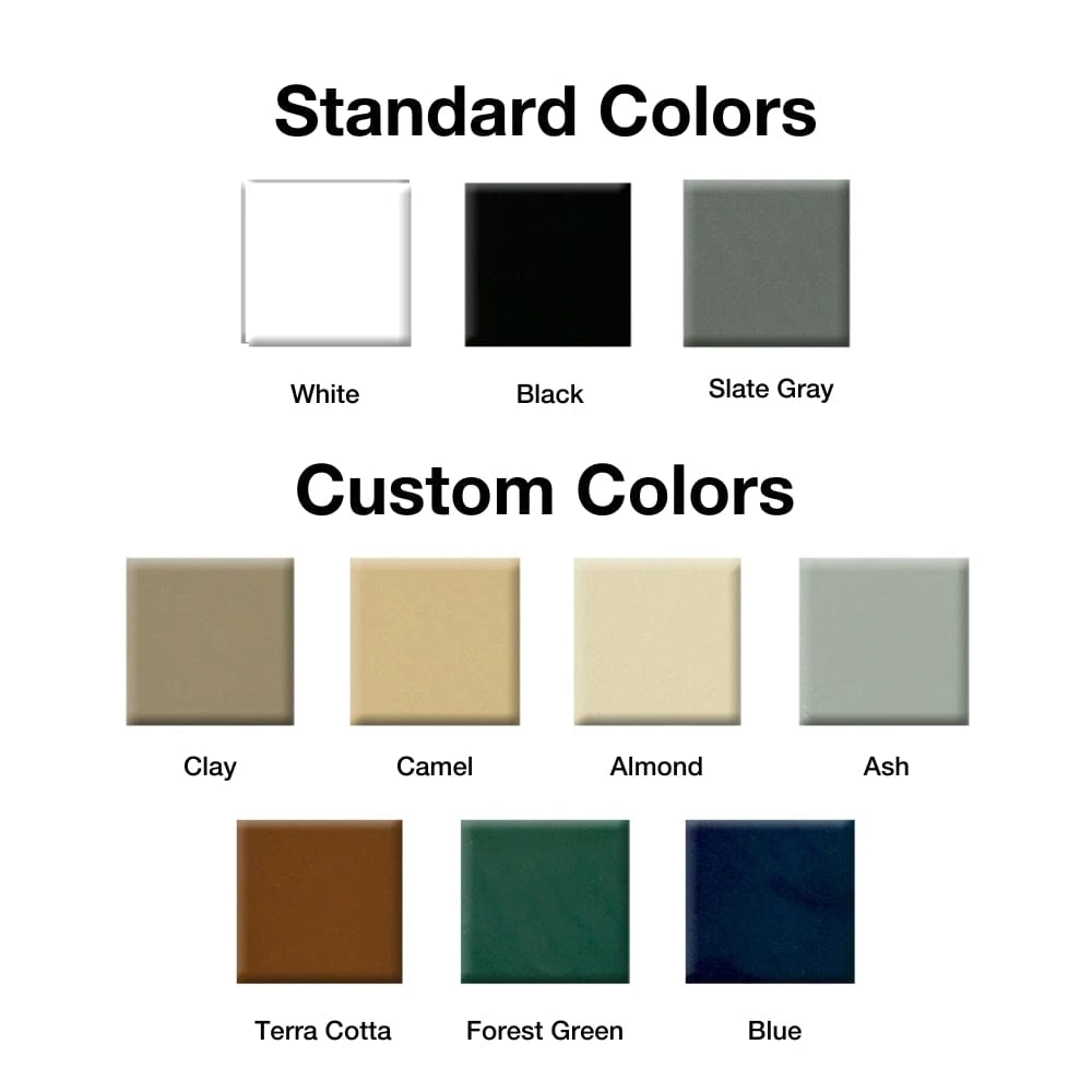 - Can be customized to other colors, Almond, Ash, Black, Blue, Camel, Forrest Green, Terra Cotta, or Clay