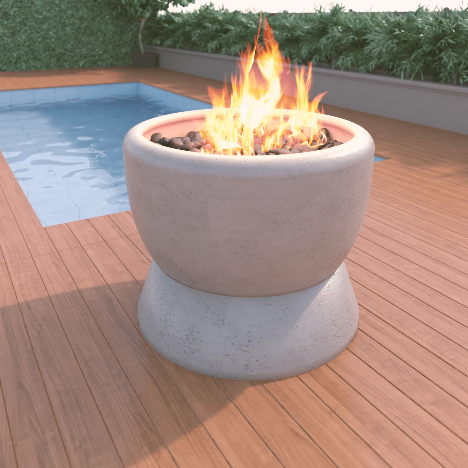 - Round Concrete Fire Bowl complements modern patios and adds warmth.