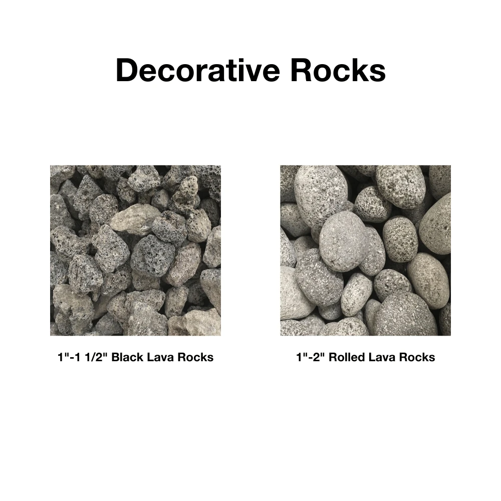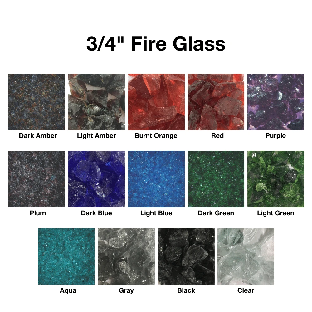 Optional Accessories: 3/4″ Fire Glass, Lava Rocks, Fabric Cover, Burner Cover, and Wind Guard