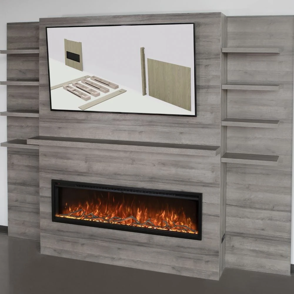 What’s Included: Spectrum Slimline 60″ Electric Fireplace (Optional), Main Wall Section Assembly, ALLWOOD Mantel, Hardware, and User’s Manual