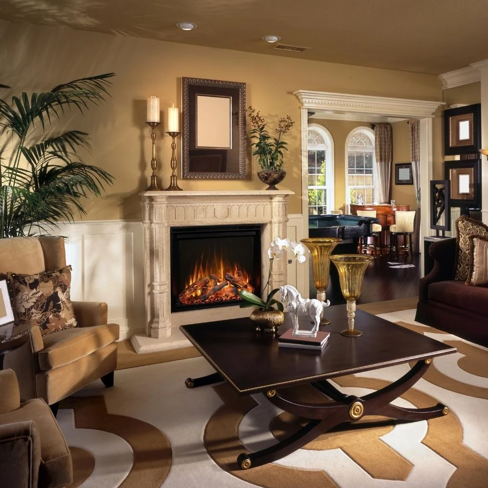 Featuring Hybrid-FXâ„¢ Flame Technology to independently control the flame, ember bed, and downlight colors, thermostat, remote, and timer, this fireplace is perfect for adding style, warmth, and ambiance to any room. This fireplace comes with two trims. Designed for easy installation, just slide it in an existing zero-clearance fireplace, and add the trim for a perfect finish. It can also be installed on any wall with a 10-inch depth. Installing this fireplace can be a DIY job.
