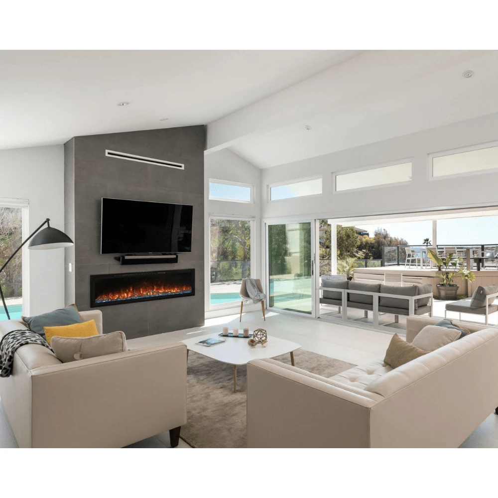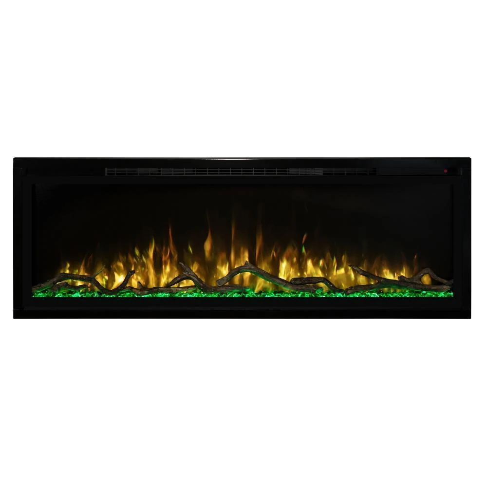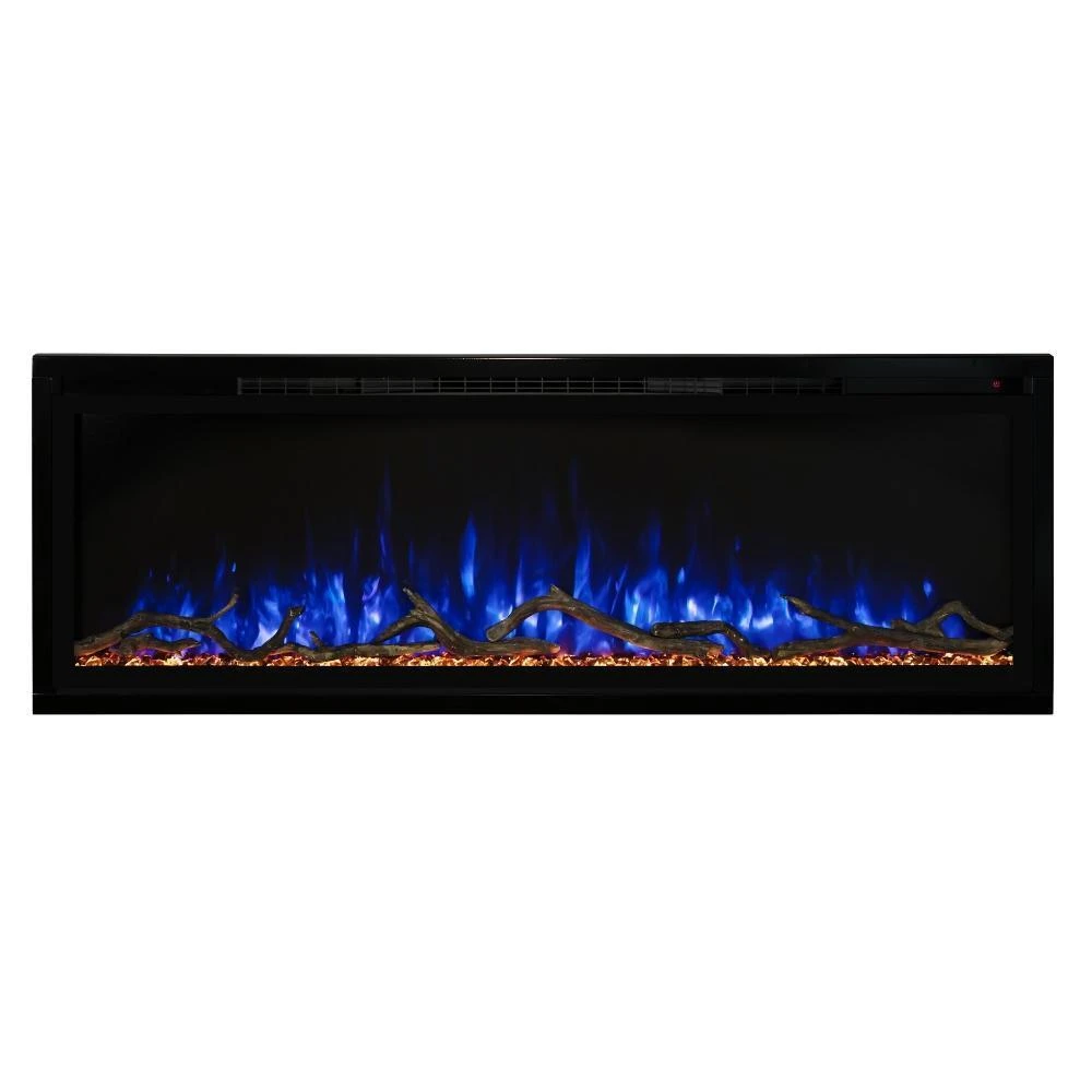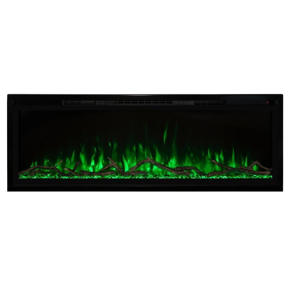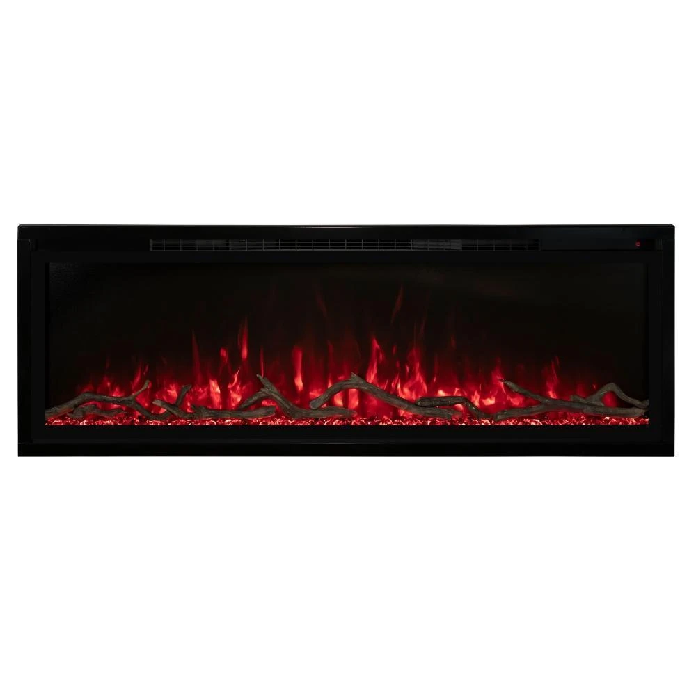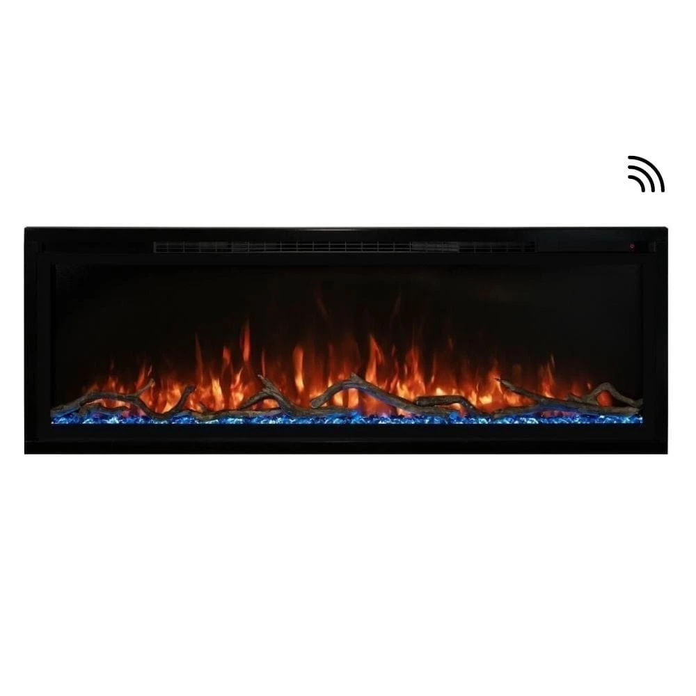 Modern Flames’ Hybrid-FXâ„¢ Flame Technology is an enhanced version of their realistic award-winning flame technology. This new technology allows independent control of the flame and ember bed colors resulting in more color combinations and more vibrant flames. A large viewing area with a sleek 5/8″ trim and colorful display, further enhanced with logs and glass media, both come with the fireplace, making this fireplace an eye-catching wall accent.