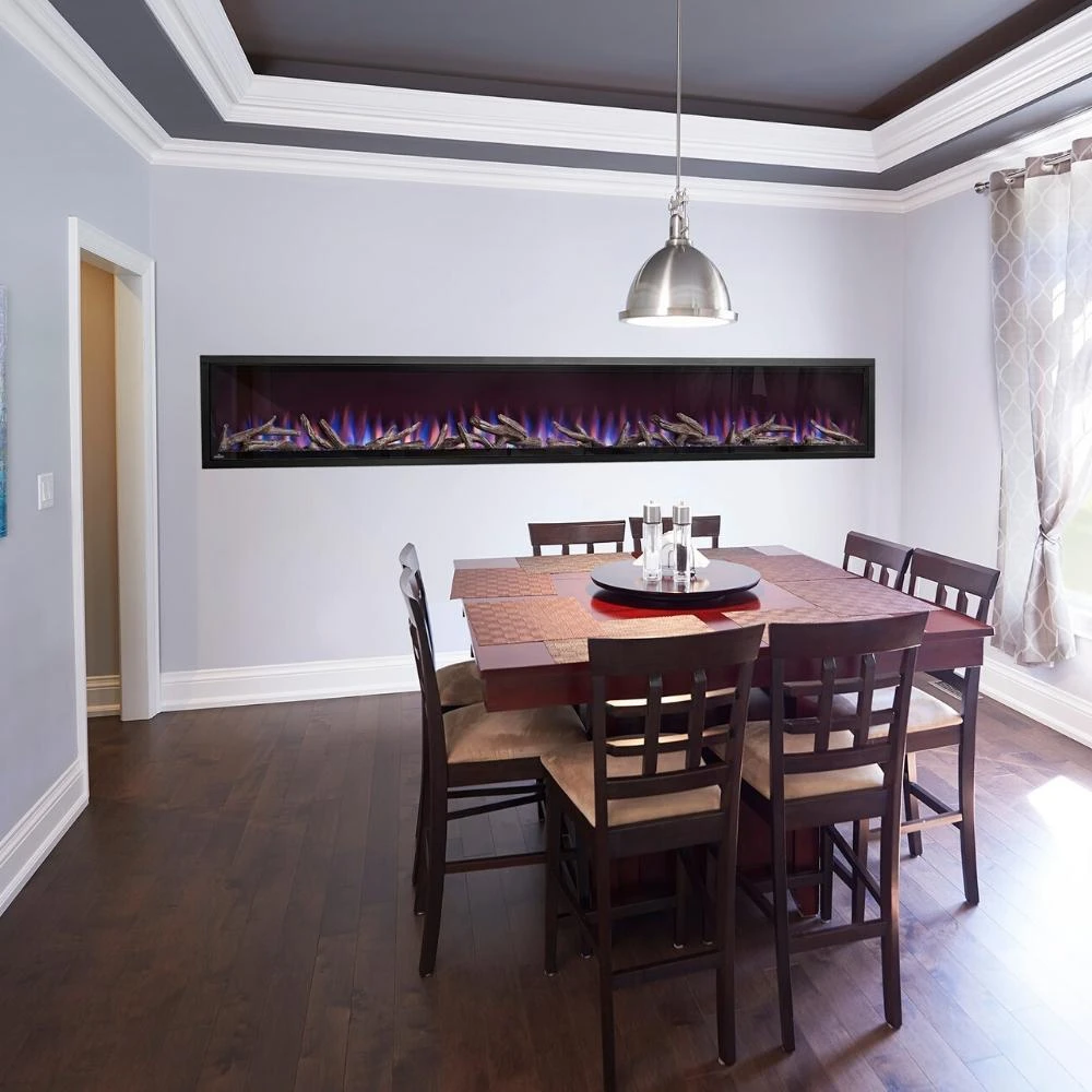 Well-designed living spaces can sometimes be lackluster, especially with poor ambiance. The beautiful flames of a fireplace add charm and a warm accent to your room. However, traditional fireplaces are difficult to install and take up a relatively large space. The Napoleon Alluravision Deep Linear Electric Fireplace beautifies your space and is easy to install as it requires no vent.