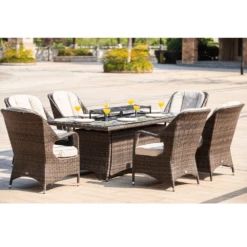 Direct Wicker Regal 7-Piece Outdoor Dining Set With LP Fire Pit Table (PAG-1106-R)