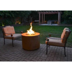 Top Fires Beverly Round Corten Steel Gas Fire Pit – Match Lit