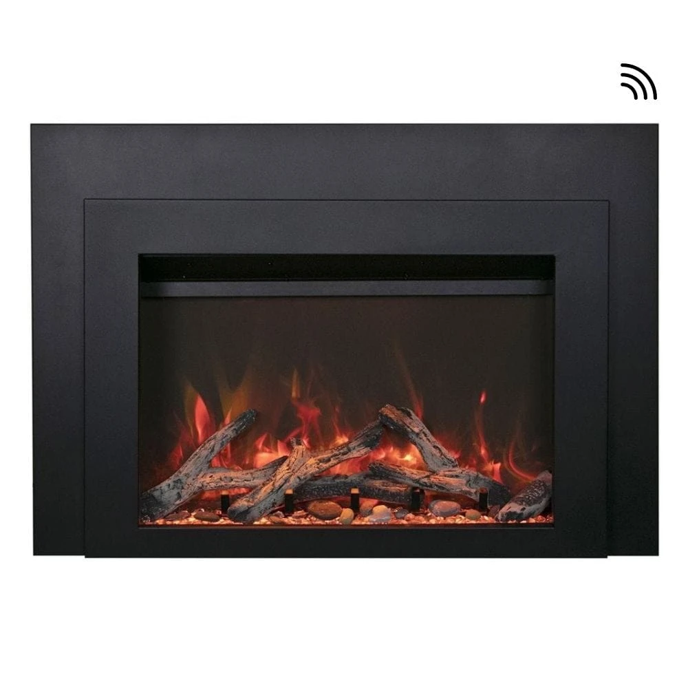 Sierra Flame 42″ Electric Fireplace Insert with Steel Frame is Ideal for zone heating, this electric insert easily heats a space of 400 to 500 sq ft in size and comes standard with a black overlay.