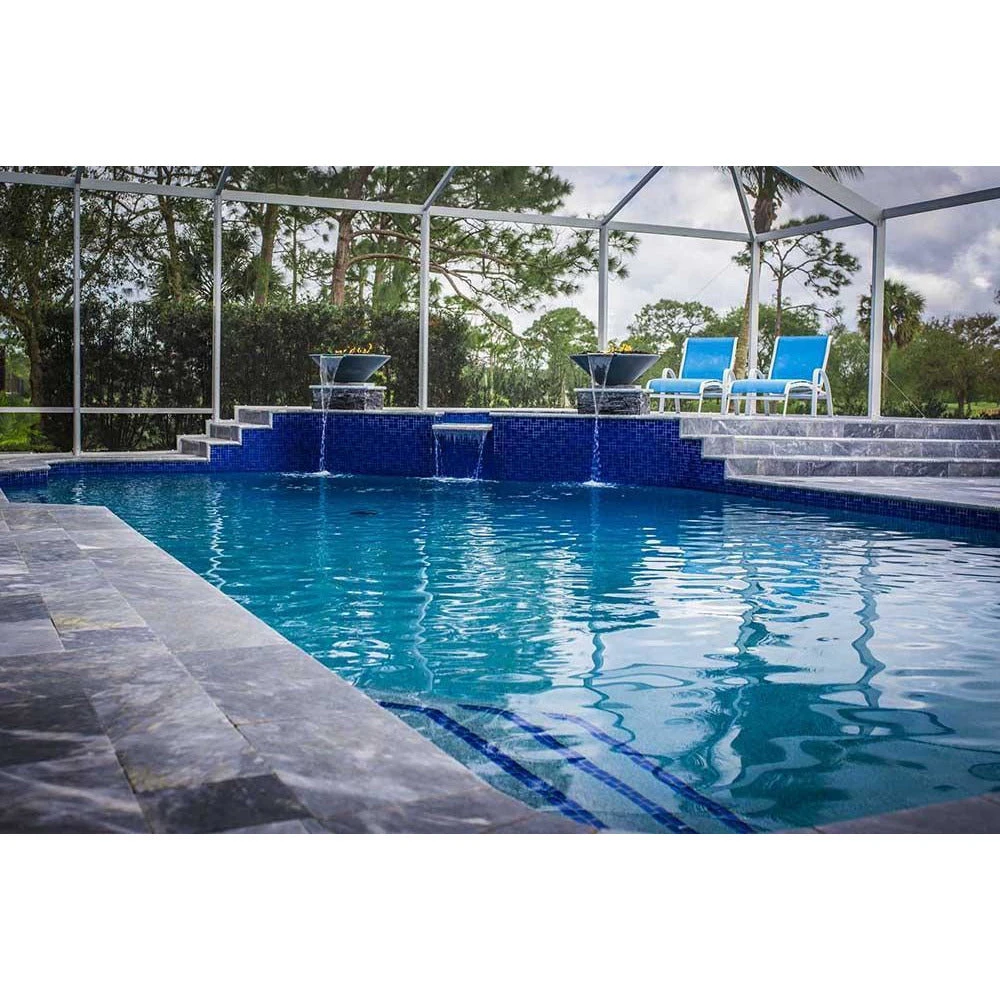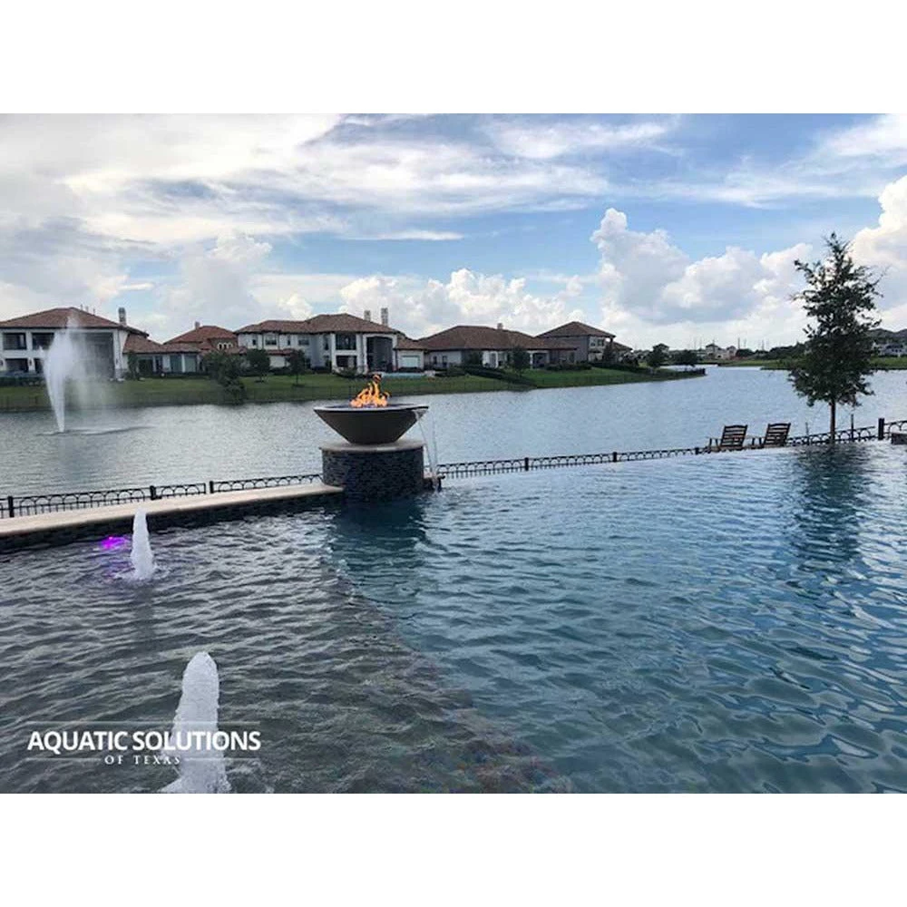 Top Fires Cazo Fire and Water Bowl is made of Glass Reinforced Concrete (GFRC) and comes in 9 solid colors, 5 metallic finishes, and 4 rustic finishes to match the style of your exteriors. Its inverted triangle shape is a classic look that breathes elegance into a space. By decorating it with optional lava rocks, fire glass, or ornaments, you can make it look even more beautiful.