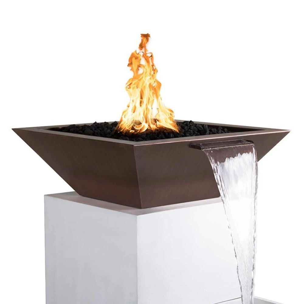 The combination of calm flowing water and warm glowing flames creates an unparalleled relaxing experience for you and your guests. Several of these bowls lined up will beautifully illuminate your exteriors. Its square copper body is a nice way to add a warm metal accent to any space. You can decorate it with optional fire glass, lava rocks, or ornaments to make it more beautiful.