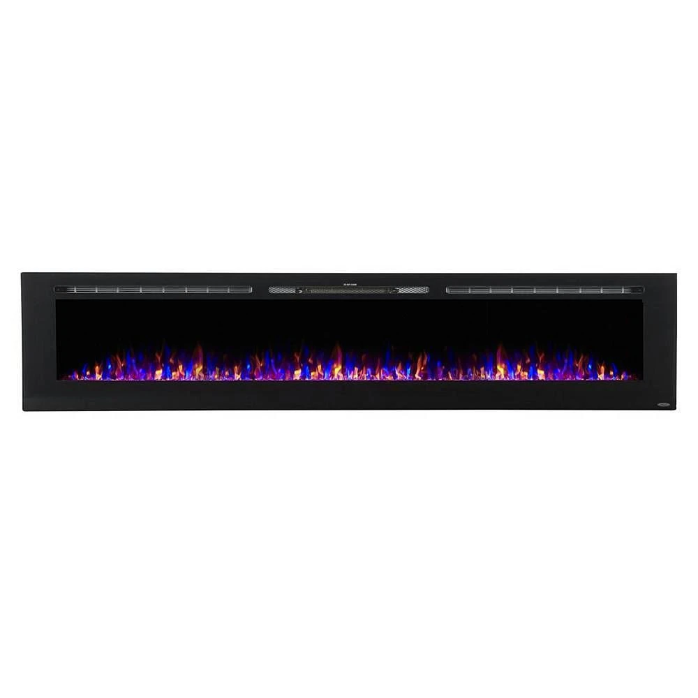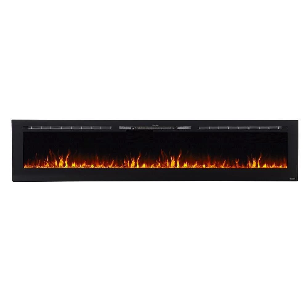 Touchstone Sideline 100″ Recessed Electric Fireplace is the perfect solution! This fireplace insert is designed for seamless recessed installation in a wall, but it can also be hung on a wall if you prefer. Plus, there are 5 flame settings, from a quiet ember to a raging blaze, and three color-changing options (orange, blue, and blue-orange).