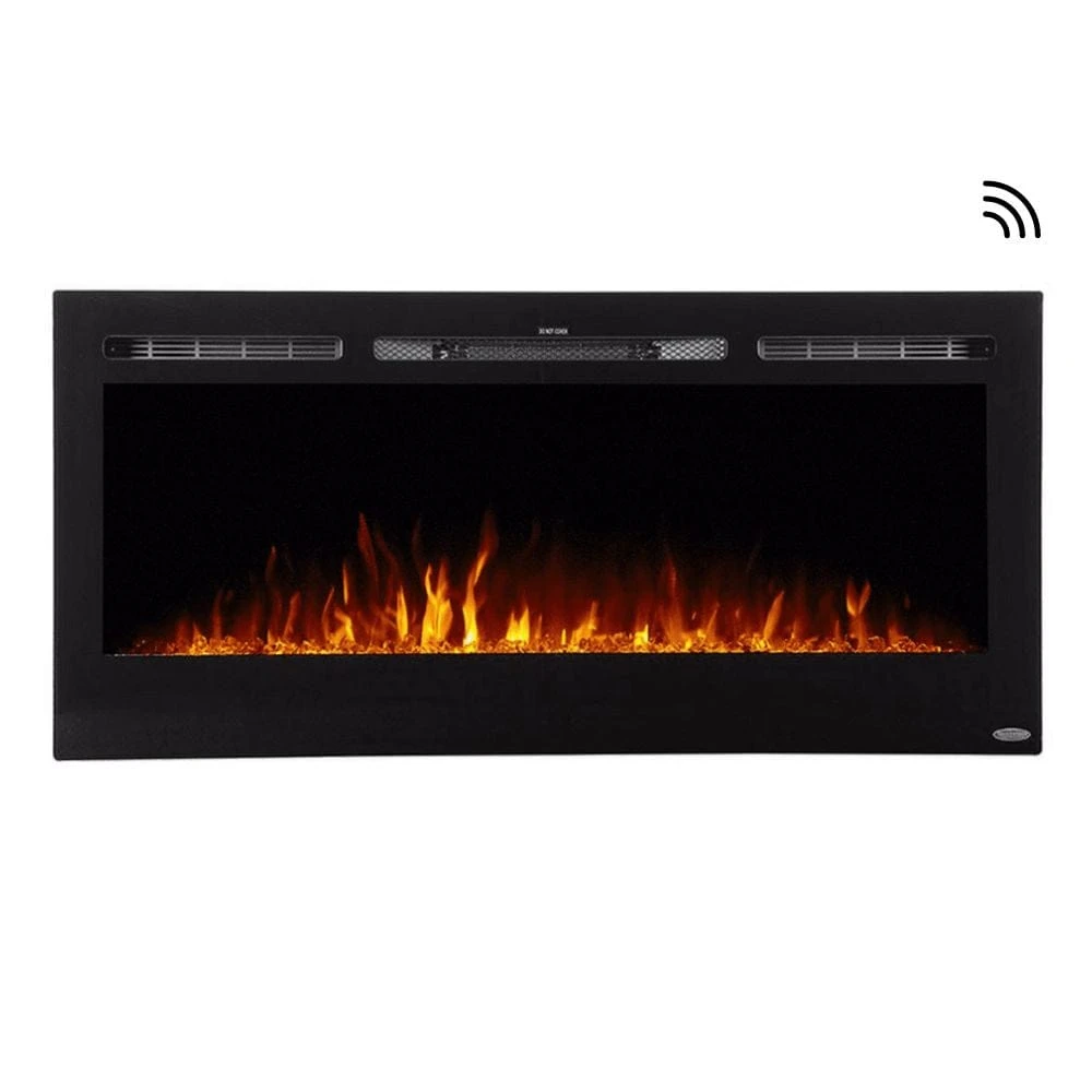 Touchstone Sideline 40-Inch Recessed Smart Electric Fireplace is the perfect solution. This electric fireplace is easy to install- you just need to drill two small holes in your wall for the air vent and power cord. Plus, it doesn’t produce any smoke or fumes, so you don’t have to worry about ventilation. The built-in remote control makes it easy to adjust all the functions of the fireplace, so you can customize the flame to match your mood and decor.