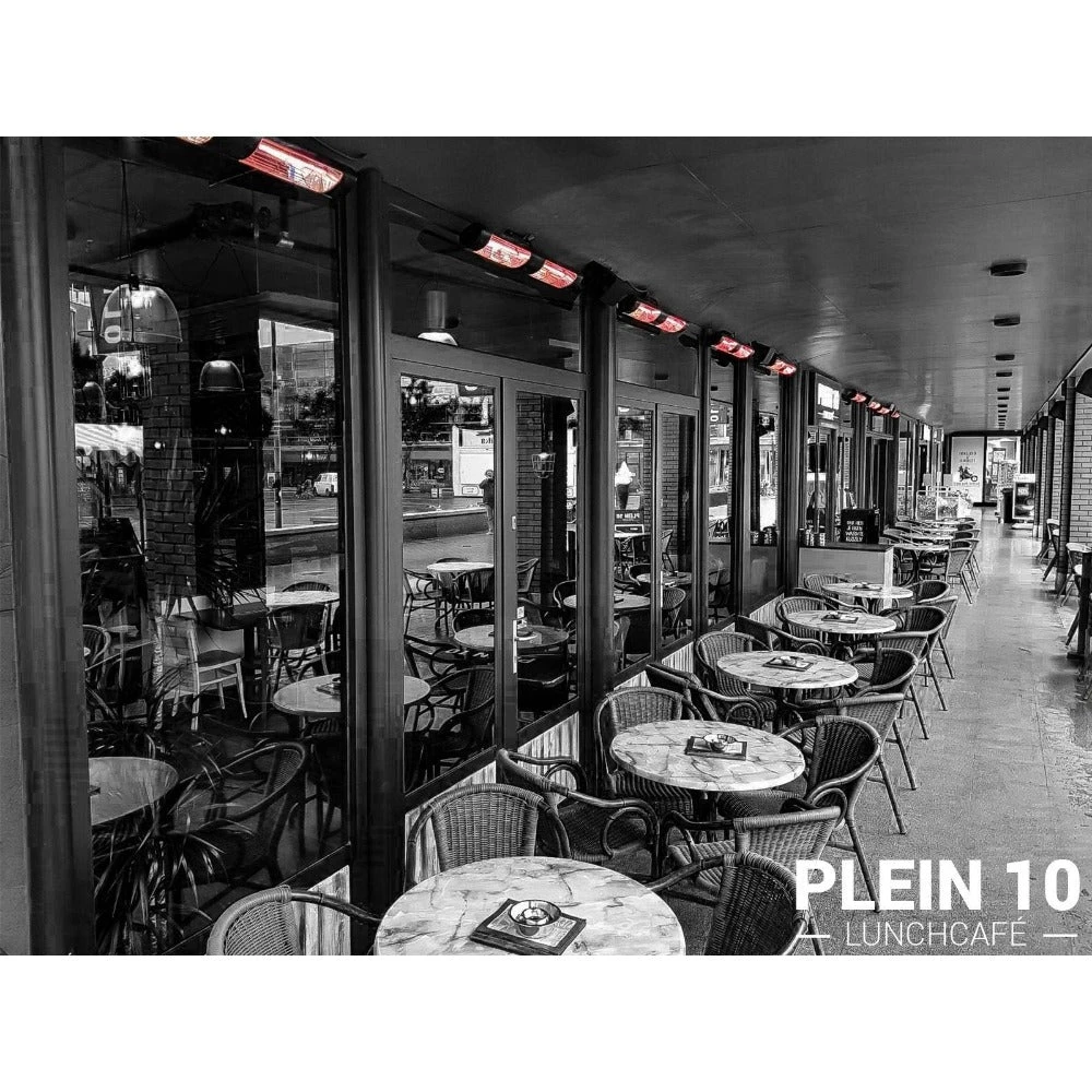 This 38″ heater is equipped with 2 gold-coated quartz lamps, each providing 1500W of heat. Install this 3000W heater on a wall above a particular area. Mounting brackets are included for easy installation. Install a series of heaters in large spaces, more than 100 square feet, to keep people within the area warm and comfortable.